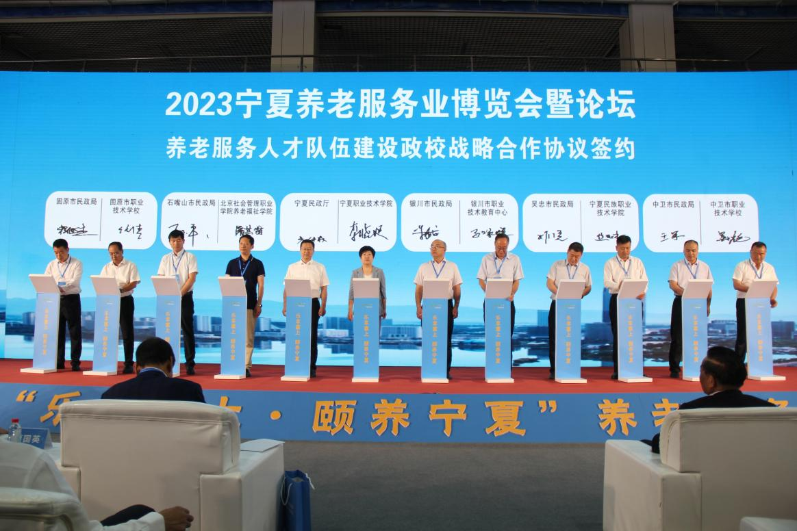 8月25上午,由宁夏回族自治区民政厅、宁夏贸易促进委员会联合主办的2023 宁夏养老服务业博览会暨论坛在银川国际会展中心举行。公司党委委员、副董事长李晓延受邀参加开幕式,并代表学校与自治区民政厅签署协议,世界杯8833300足球班子成员参加活动。