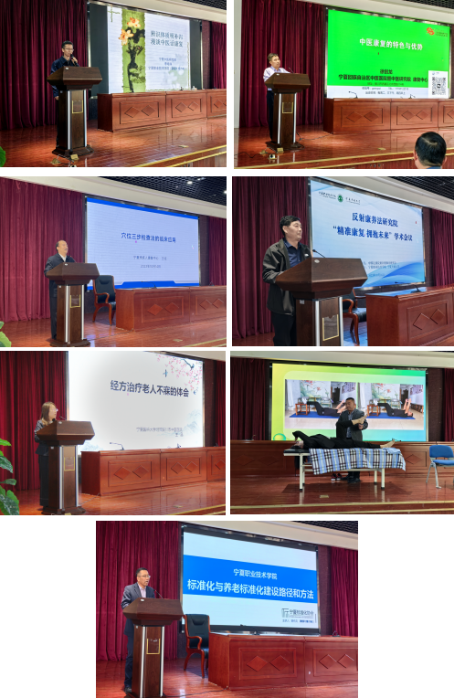 学术会议由陈岩教授主持,宁夏残疾人康复中心副主任王结主任医师、宁夏中医研究院李长寿主任医师、徐创龙副主任医师、银川市中医医院王晶主任医师、深圳市上和中医诊所祝向前医师等专家学者紧紧围绕反射疗法等中医适宜技术在养生保健、慢病调理、康复治疗等领域的应用做了学术报告与交流探索。同时恰逢世界标准日,宁夏标准化协会会长韩作兵对我区健康养老产业标准化建设的路径和方法做了详细解读和深入分析,为学院正在进行的标准化建设提供了有效参考,具有现实的指导意义。