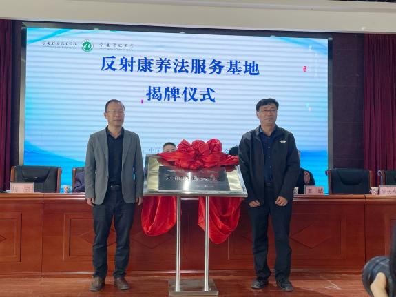 陈岩副经理与李长寿主任同为反射康养法服务基地揭牌。