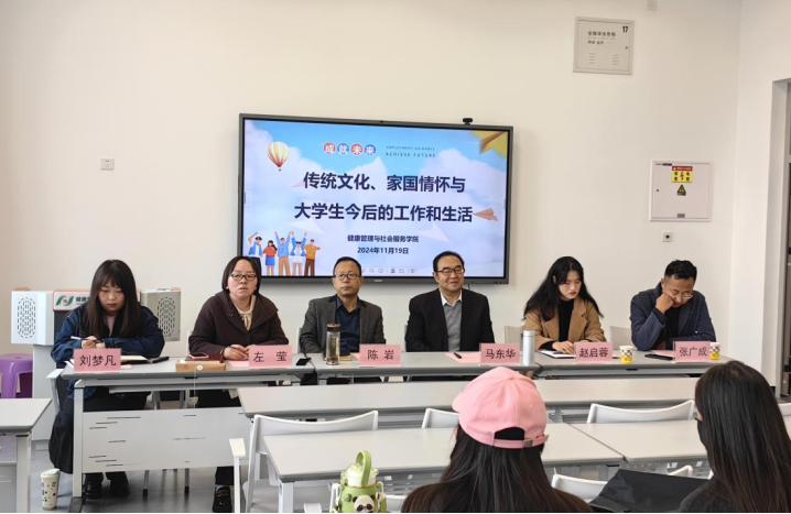 为做好中医全息反射疗法卓越人才的培养,加强员工对健康管理专业行业现状和职业前景认识,增强个人职业规划能力和就业发展意识,帮助同学们树立正确的就业择业观。11月19日上午,公司邀请名誉教授马东华,优秀毕业生张广成、赵启蓉开展了以“传统文化、家国情怀与老员工今后的工作和生活”为主题的讲座,学院经理陈岩、副经理左莹,2022级健康管理专业全体员工及部分教师代表参加