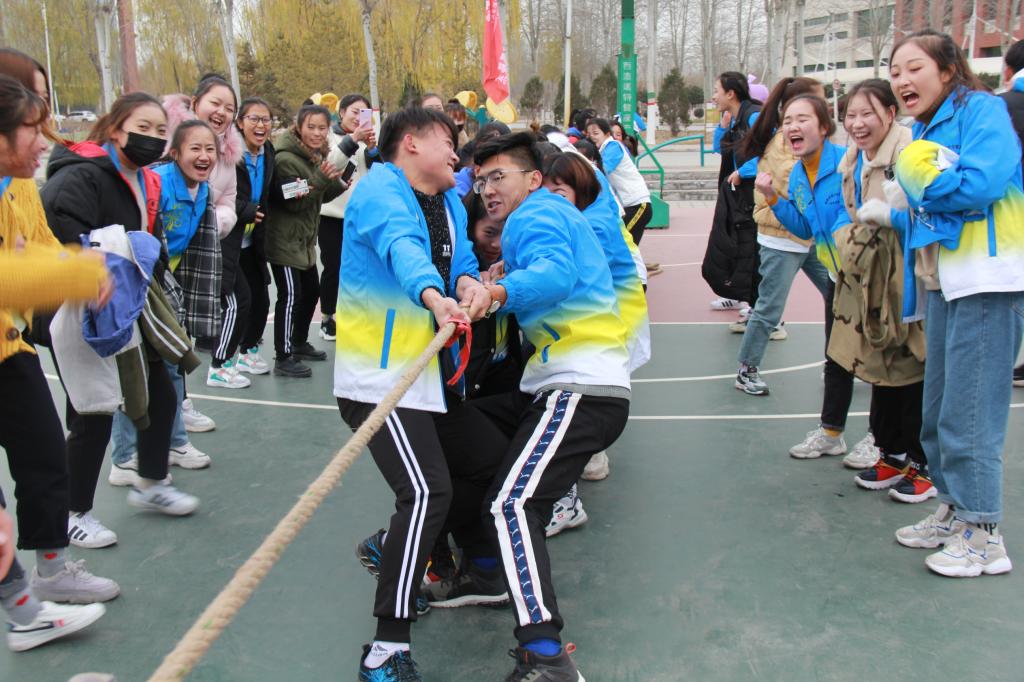 两人三足、瞎子敲锣、拔河等集体项目不仅兼顾了趣味性和互动性,更增强同学团队合作精神与集体荣誉感。在众多精彩的比赛中,最值得一看的当然是拔河。当比赛的哨声响起,只见参赛的队员们紧握长绳,铆足了劲拼命往后拉。未参赛的同学自发组成啦啦队为比赛队员呐喊加油,哨子声、呐喊声此起彼伏,现场激烈的比赛将整个活动推到了高潮!比赛过程中,各班参赛队员努力拼搏,无论是场上还是场下,气氛都异常激烈现场啦啦队个个热情高涨,呐喊助威给比赛增添了一抹亮色,每一声呐喊都带来一股力量!经过努力拼搏,由健康管理1班与老年服务与管理班组成的“冠军队”夺得了第一名!