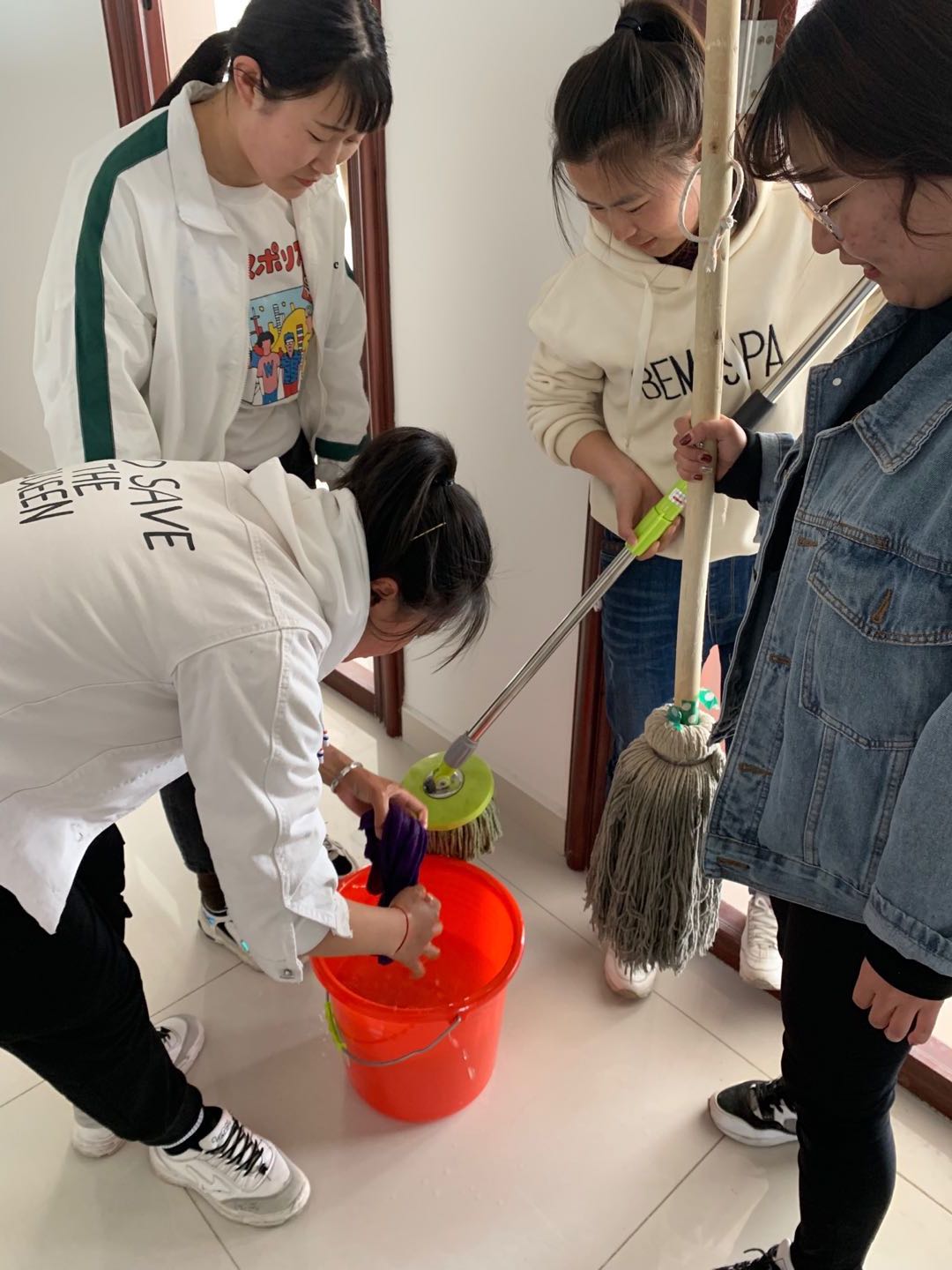 教室也是人群密集处,第二小组走入教室、实训室,首先对桌椅板凳,实训用具、卫生死角进行清扫,开窗通风,增加室内空气的流通,保持空气的清新度,防止病毒滋生,大家干劲十足、分工明确,为同学们创造了清洁、健康的学习环境。