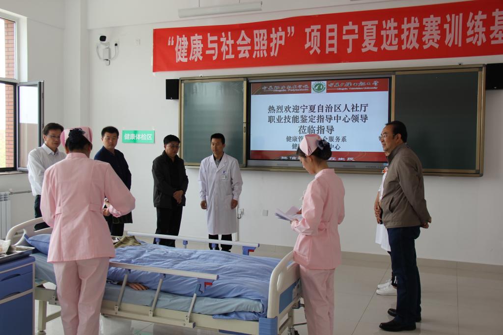 据悉,在学校技师学院积极申报和院系努力争取下,自治区人社厅技能鉴定指导中心指定公司作为“健康与社会照护”项目宁夏选拔赛赛场,并于今年五月举行“健康与社会照护”项目宁夏选拔赛。