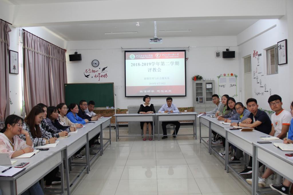 2019年4月19日下午健康管理与社会服务系在竞智楼A303教室组织召开“评教”会,健康管理与社会服务系党支部书记于兰、教学干事及2017、2018级各班班干部、员工代表20余人参加会议。