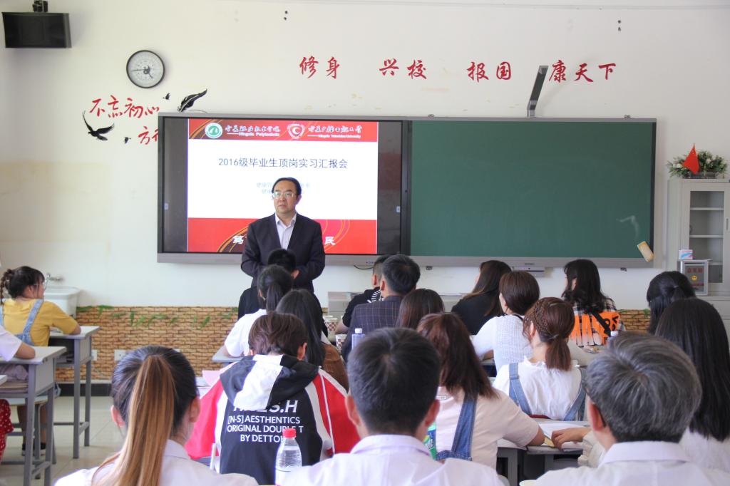 为进一步确保我系员工的实习质量,提升就业竞争力,依照惯例,5月28日下午我系在竞智楼A303举办了健康管理与社会服务系2016级毕业生顶岗实习汇报会,健康管理与社会服务系马东华主任、宁夏中房养老产业发展有限公司代表、我系专业指导教师及2016级全体员工、2017、2018级部分员工代表参加了此次汇报会,会议由班主任栗欣主持。