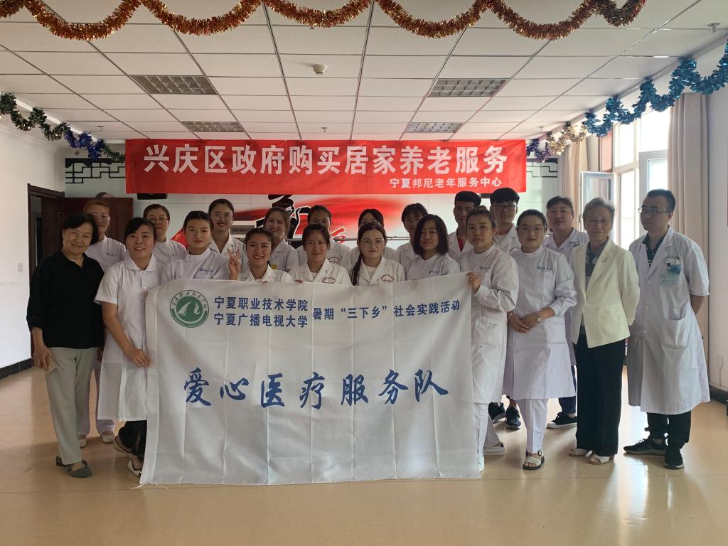 7月10日我系组织10名员工志愿者2名指导教师与校企合作单位宁夏邦尼老年服务中心组成“爱心医疗服务队”,赴胜利社区开展暑期“三下乡”社会实践活动。