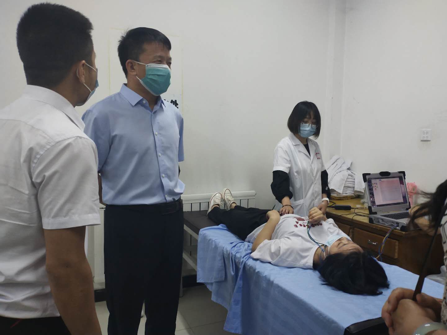 6月22日傍晚,健康管理与社会服务系治未病服务协会为2019级健康管理专业1班同学开展无创血液检测活动。期间,值班校领导陈晓军副书记带领教务处、员工工作部、职业技能鉴定中心、后勤服务处、健康管理与社会服务系等值班教师调研指导。