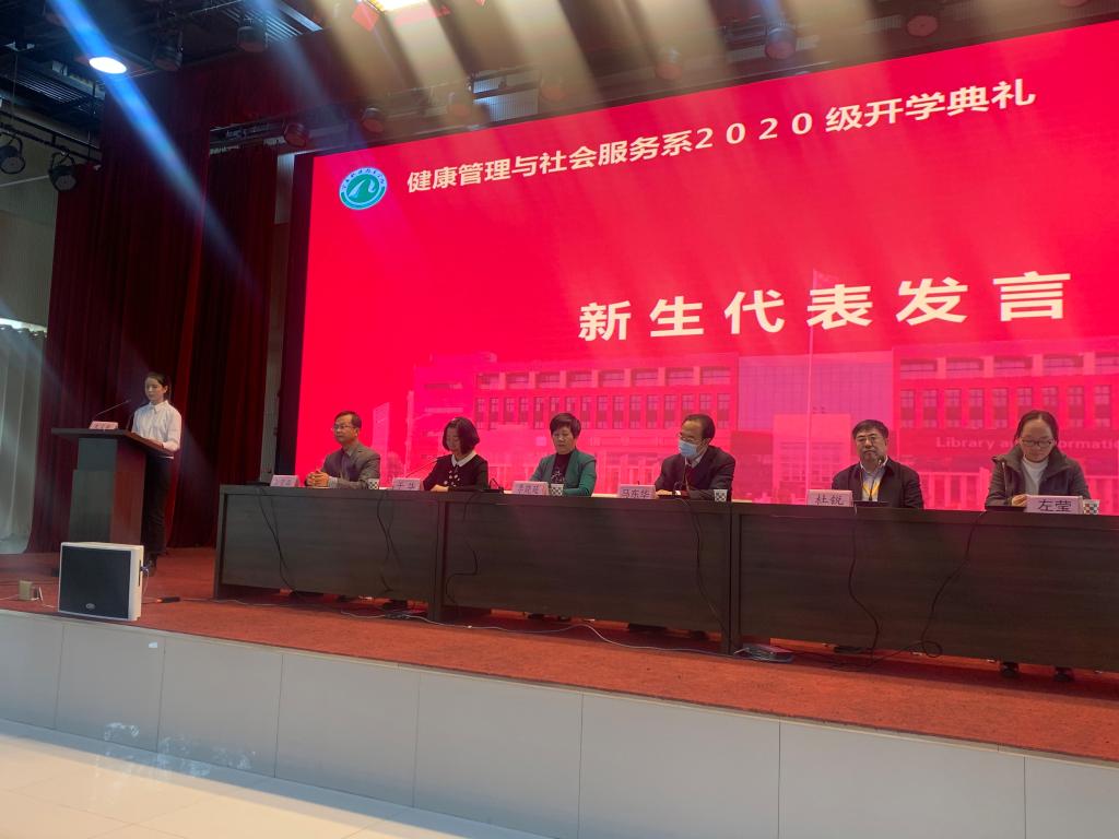 健康管理与社会服务系于10月20日下午在纺织楼一楼报告厅召开“2020级新生开学典礼”,出席本次活动的有:公司副董事长李晓延,健康系全体教师以及2020级全体新生。本次开学典礼由于华书记主持。