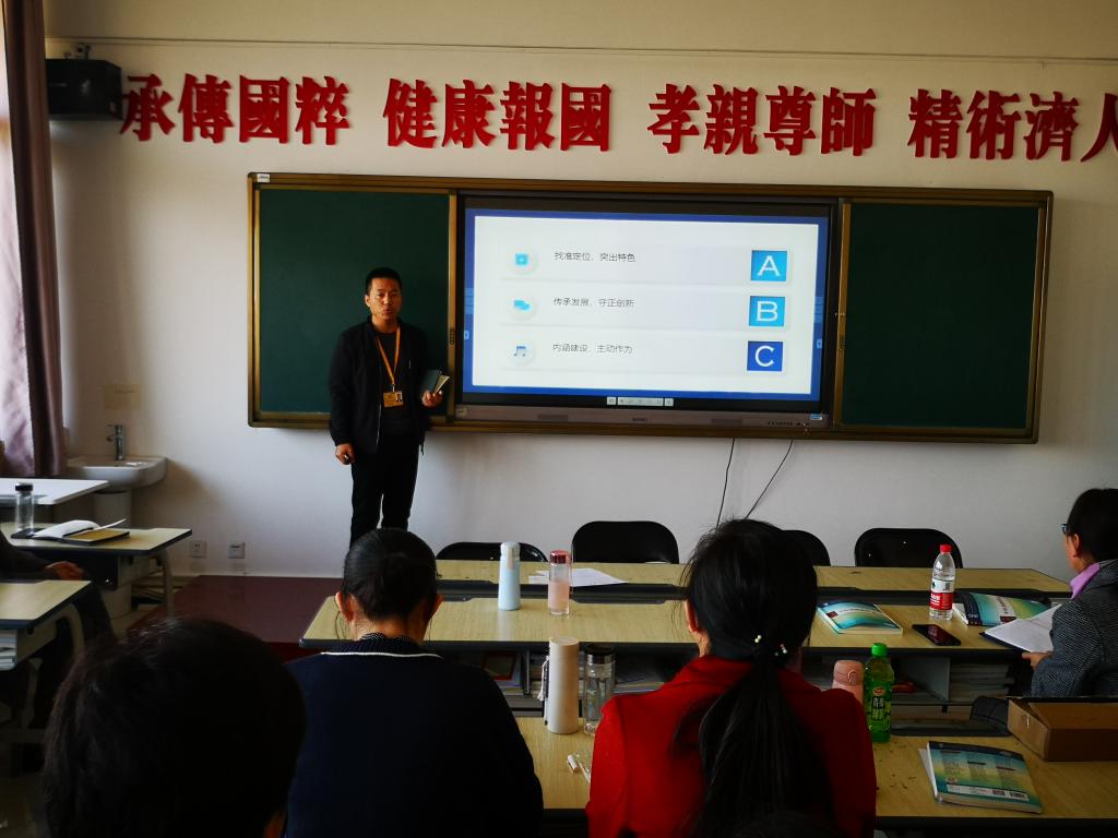 老年服务与管理教研室主任袁枫老师首先从专业建设背景、基础、思路、内容、经费预算以及效果评价六个方面对系部发展现状进行了介绍,并从专业今后的发展方向、团队队伍建设、实训室建设方面进行了具体筹划和部署。