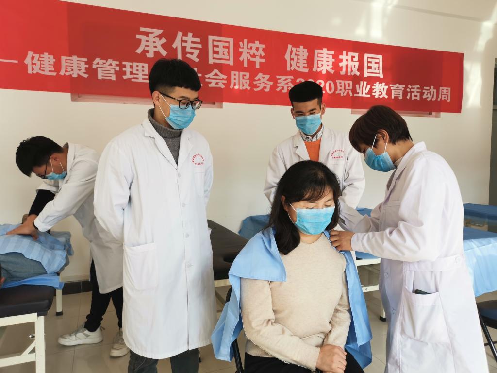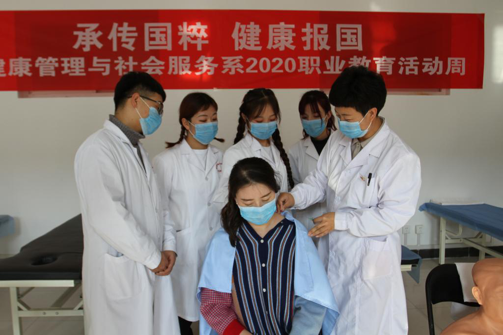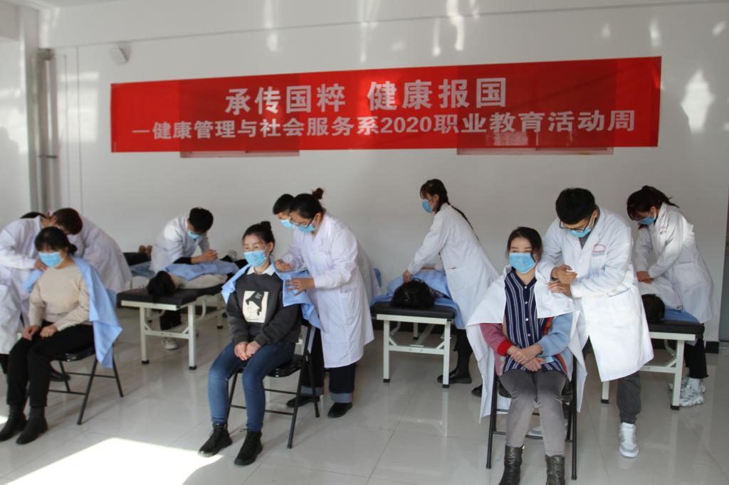 近年来,健康管理与社会服务系以习近平新时代中国特色社会主义思想为指导,落实立德树人根本任务,以理想信念教育为核心,秉承“承传国粹 健康报国 孝亲敬师 精术济人”的教育理念,不论是理论课的思想熏陶还是实践课的具体践行,把“工匠精神”的内涵始终贯穿在职业教育的全过程。要求教师既要有精益求精、一丝不苟、热爱职业、爱护员工等高尚的师德,又要在教学与育人过程中积极探索、勇于让员工做到德技并重,将“工匠精神”融入职业教育人才培养全过程,切实履行教育为了员工,一切出发点都为了员工的目标,从而产生“润物细无声”的以文化人、以文育人效果,最终形成高职院校育人要素共生体系的持续构建。