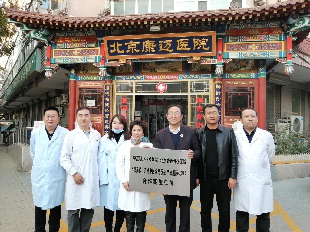 健康管理与社会服务系主任马东华(右三)代表学校与北京康迈骨伤医院共同签署协议并互相授牌