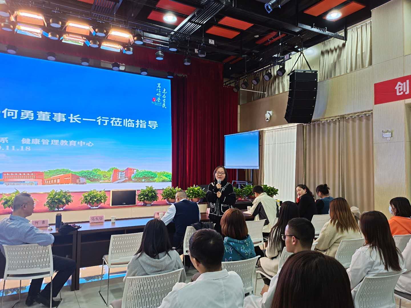 为贯彻落实党的十九届五中全会精神,推动健康管理与社会服务系高质量发展,落实“三全育人”,进一步帮助和引导员工认清就业形势、了解就业政策、树立正确的就业观念、制定合理的求职目标,激发员工求职的主动性,提升求职择业能力,为职业人才培养注入新的动力并增加健康管理专业群就业对口率,健康管理与社会服务系于11月18日下午特邀兰州新家园投资有限公司董事长、公司客座教授何勇在纺织实训中心一楼报告厅为同学们带来“就业创业指导及经济学内容”主题讲座。系党支部副书记俞莹磊、系副主任左莹、全体教师及系部18级员工参加讲座。讲座由系主任马东华主持。