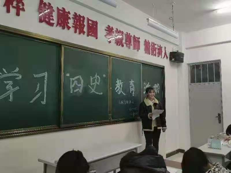 本次活动由团支书马菲菲主持,她着重讲了学习“四史”教育的重要性。呼吁全体同学认真学习了解“四史”,进一步树牢“不忘初心、牢记使命”主题宗旨意识,切实增强在实践中守初心、担使命的思想自觉和行动自觉。
