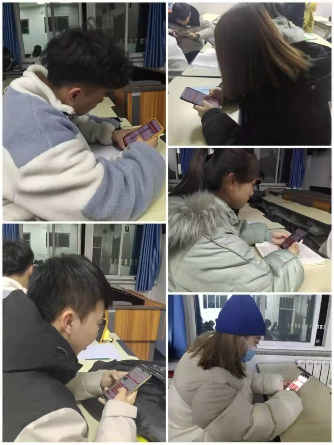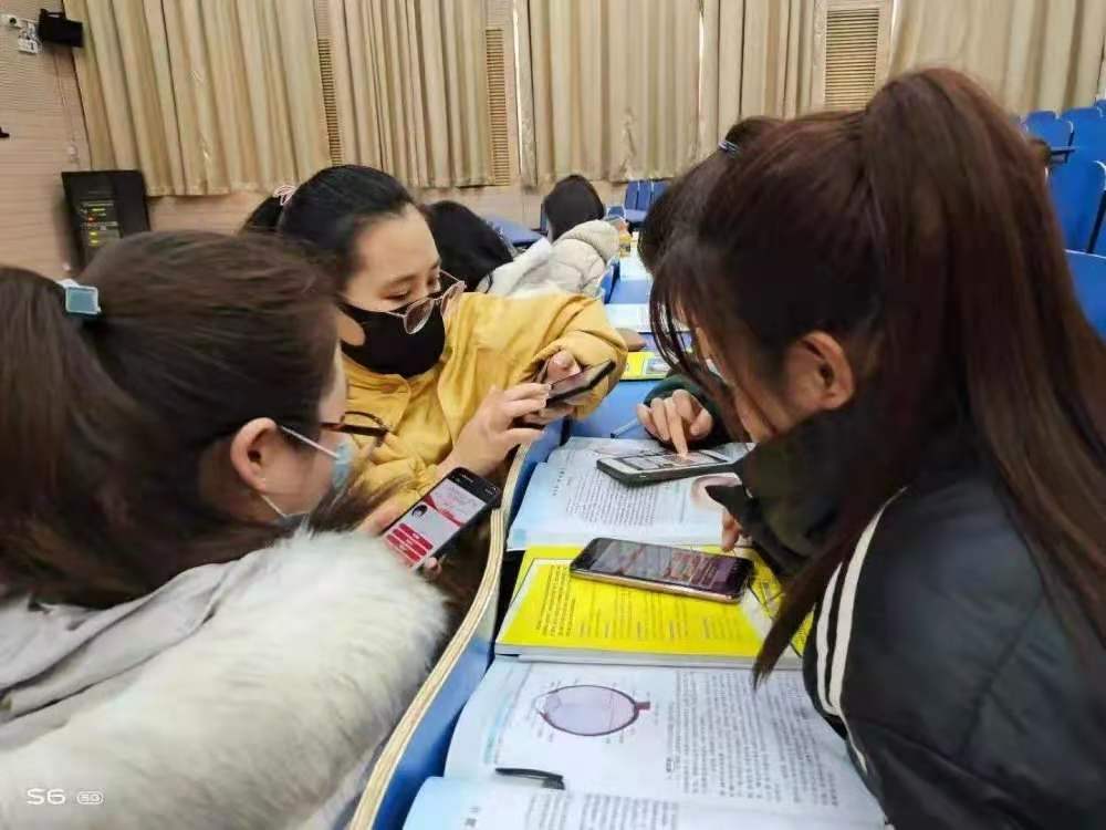 并且大家都积极的将自己的答题截图发到班级群中,“晒”出自己的成绩,同学们之间形成了一个“比赶帮超”的良性互动,在答题后,同学之间也会进行讨论,三两成群,交换意见,好不热闹!