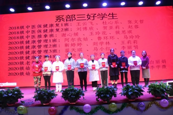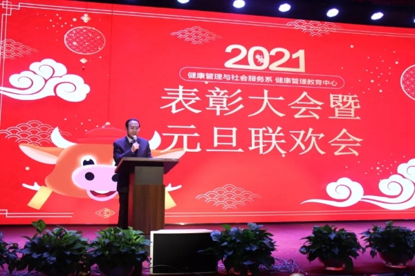 新春将至,欢乐跨年。2020年12月24日下午,健康管理与社会服务系全体师生在纺织系一楼多功能厅举行2020年度表彰大会暨元旦联欢会。公司党委副书记陈晓军,副董事长李晓延莅临活动并讲话,教务处、员工工作部、保卫处等部门主要负责人参加活动。