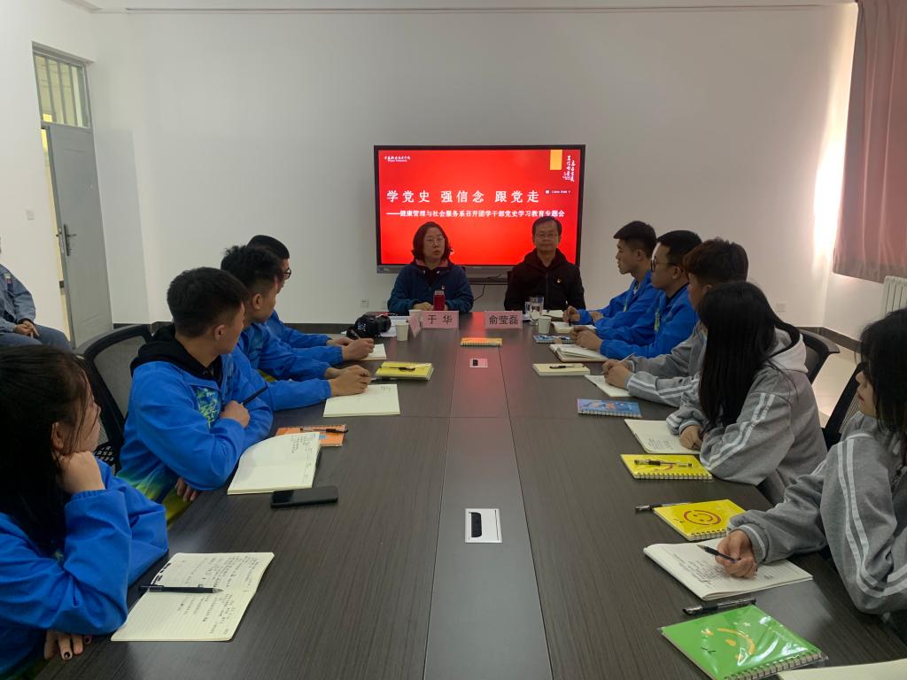 3月19日健康管理与社会服务系在竞新楼408室召开团学干部党史学习教育专题会,系党支部书记于华、副书记俞莹磊、辅导员吴婧雨及团学干部代表参加了本次会议。会议由俞莹磊副书记主持。