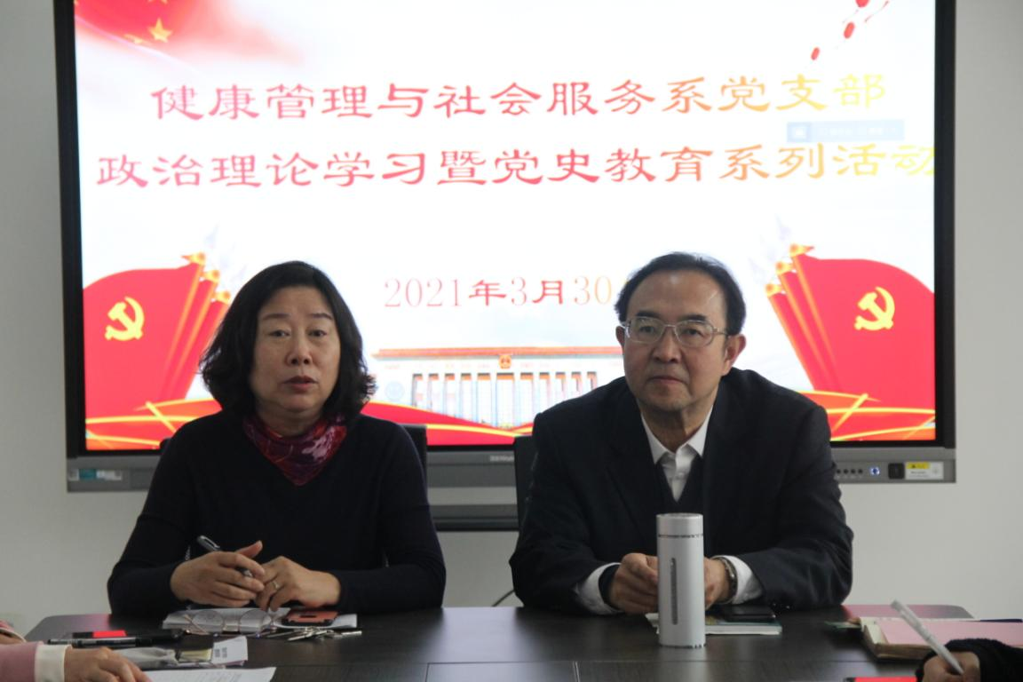 3月31日下午,健康管理与社会服务系、健康管理教育中心在竞新楼408会议室召开政治理论学习暨党史教育系列活动,会议由系党支部书记于华主持,系部全体老师参加。