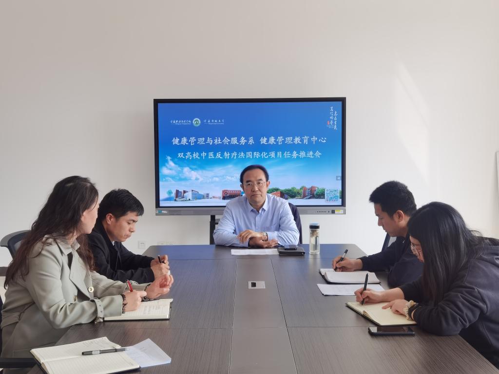 4月7日下午,健康管理与社会服务系、健康管理教育中心在竞新楼C段408会议室召开双高校中医反射疗法国际化项目推进会。会议由系主任马东华主持,系部办公室全体老师参加会议。