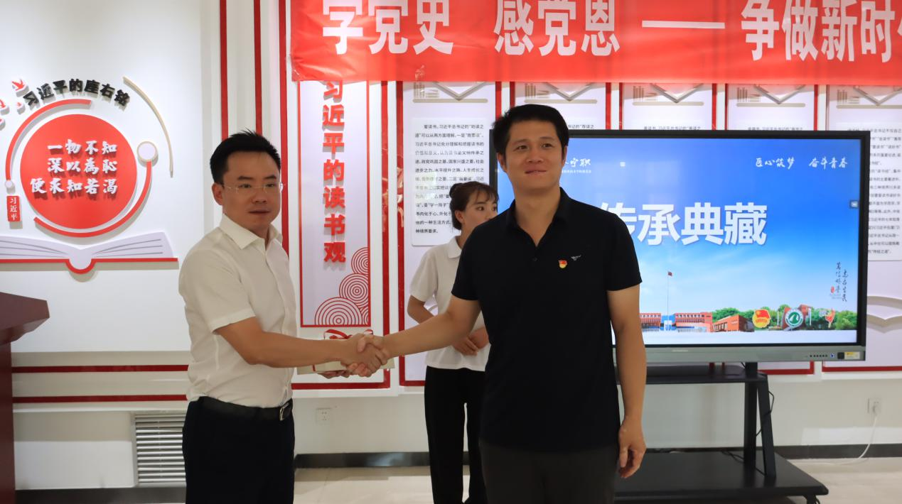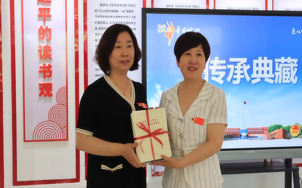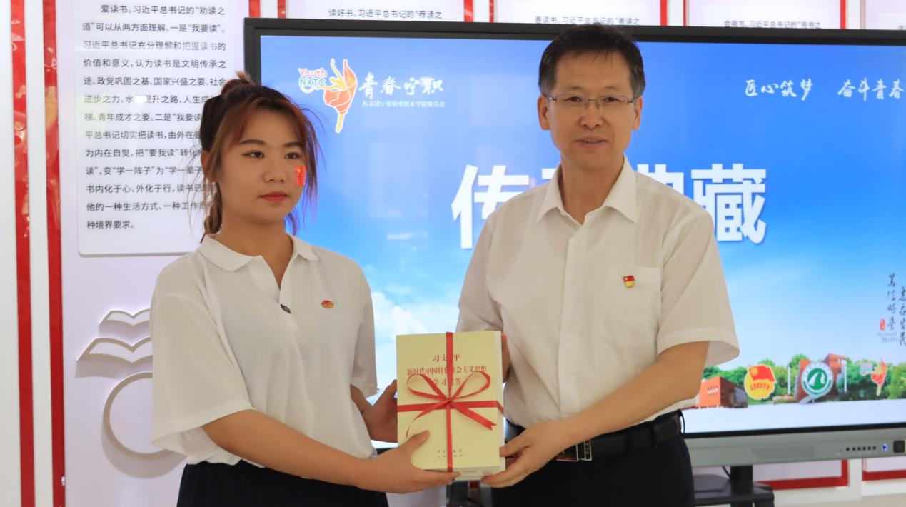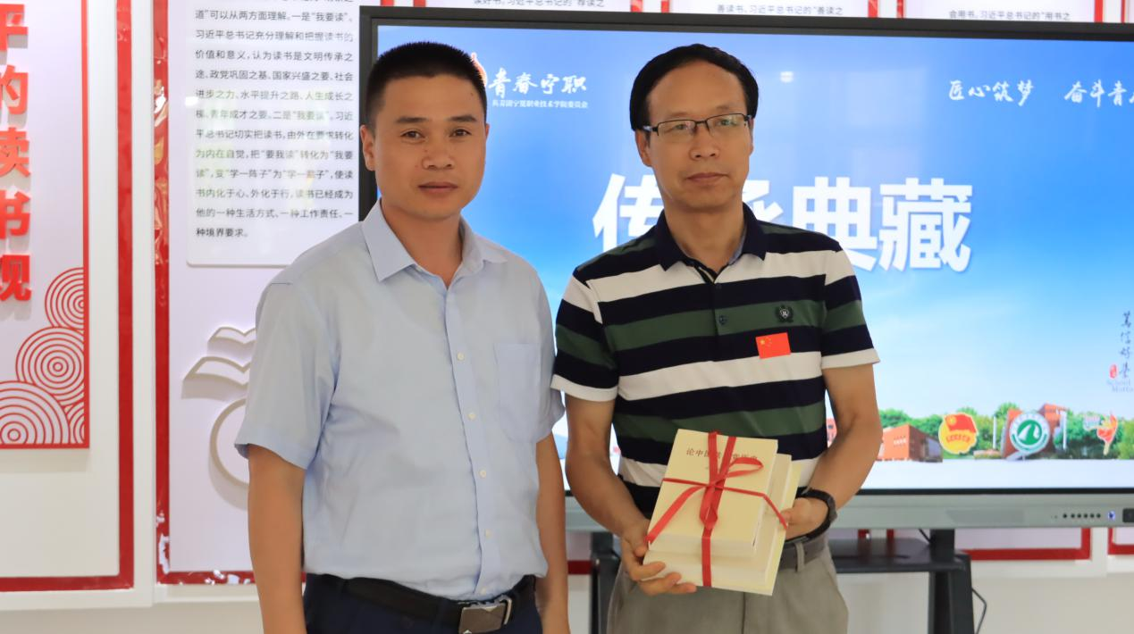 随后进行的是传承典藏环节,共青团银川市委书记刘磊向校团委赠送书籍,赵利宁书记向现场员工赠送书籍,李晓延副董事长向健康管理与社会服务系赠送书籍,陈志勇副董事长向图书馆赠送书籍。