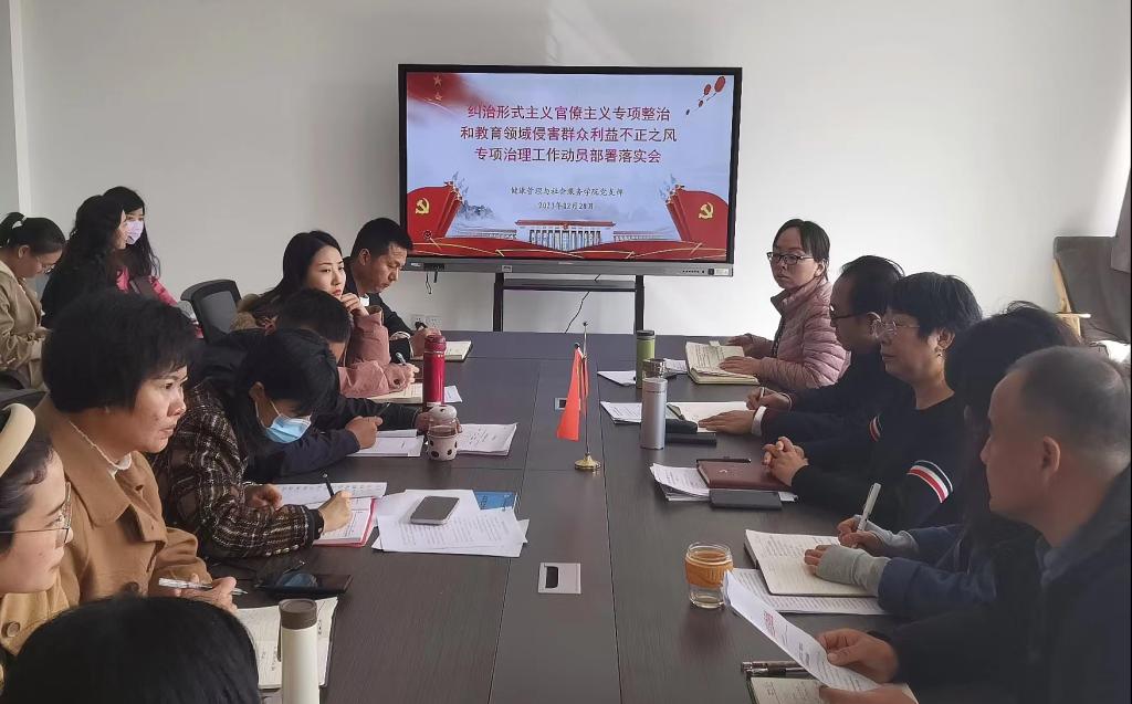 为深入学习贯彻党的二十大精神和自治区第十三次党代会精神,贯彻落实2023年全区教育系统全面从严治党工作会议精神,2月28日下午,世界杯8833300足球召开了纠治形式主义官僚主义专项整治和教育领域侵害群众利益不正之风专项治理工作动员部署会。会议由党支部书记于华主持,全体教职工参会。