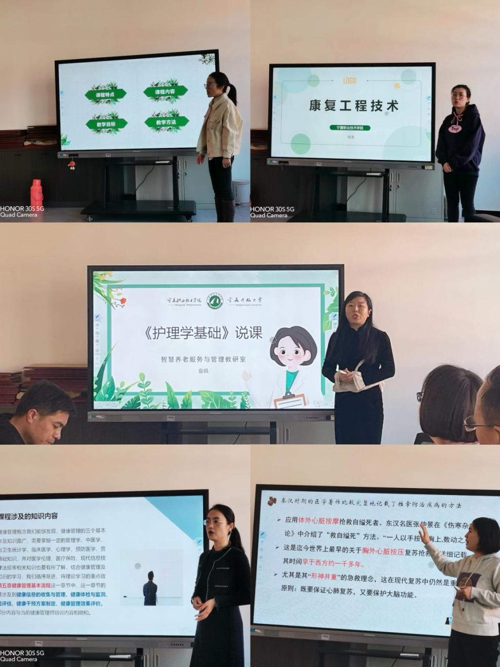 活动现场教师精心准备,教学内容选取均能紧扣康养行业对职业能力的要求,教学设计思路清晰,教学过程讲述流畅,教态大方,讲课过程精彩纷呈。副经理左莹、魏鹏及各位教研室主任对试讲过程中实训课程的准备、课程内容的岗位适用性、岗课赛证融通及培养员工专业思维等方面给予了中肯点评以及修订建议。