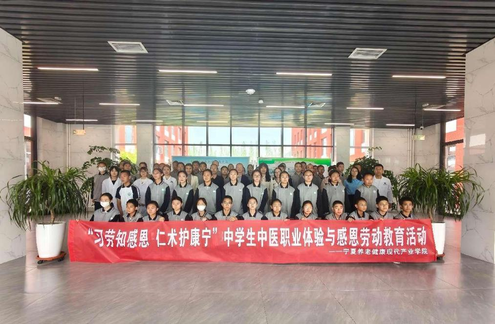 2025年4月28日,宁夏健康养老现代产业学院携手银川市西夏区中关村中学初二年级50名员工,在宁夏职业技术学院健康养老教育实训中心开展了一场以 “习劳知感恩 仁术护康宁” 为主题的初中生中医职业体验与感恩劳动教育活动,在弘扬中医药传统文化的同时,为员工们带来了丰富且意义深刻的体验。