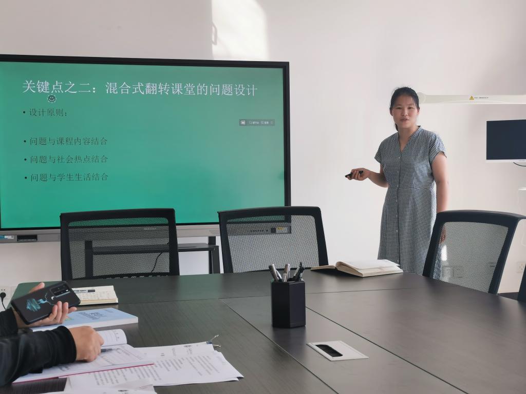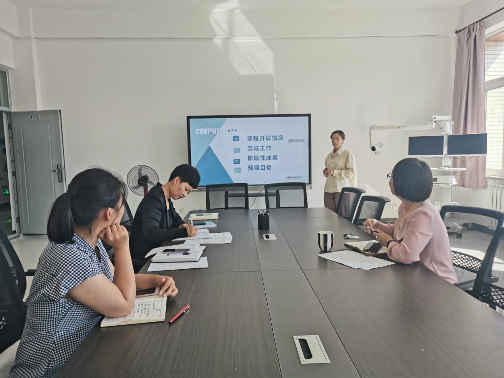 各项目负责人从对课程思政以及混合式教学项目建设的认识、项目建设思路、已取得的成果以及下一步工作计划进行了汇报。左莹副主任与各项目负责人就项目内容与开展情况进行了充分的交流研讨,并提出改进建议。