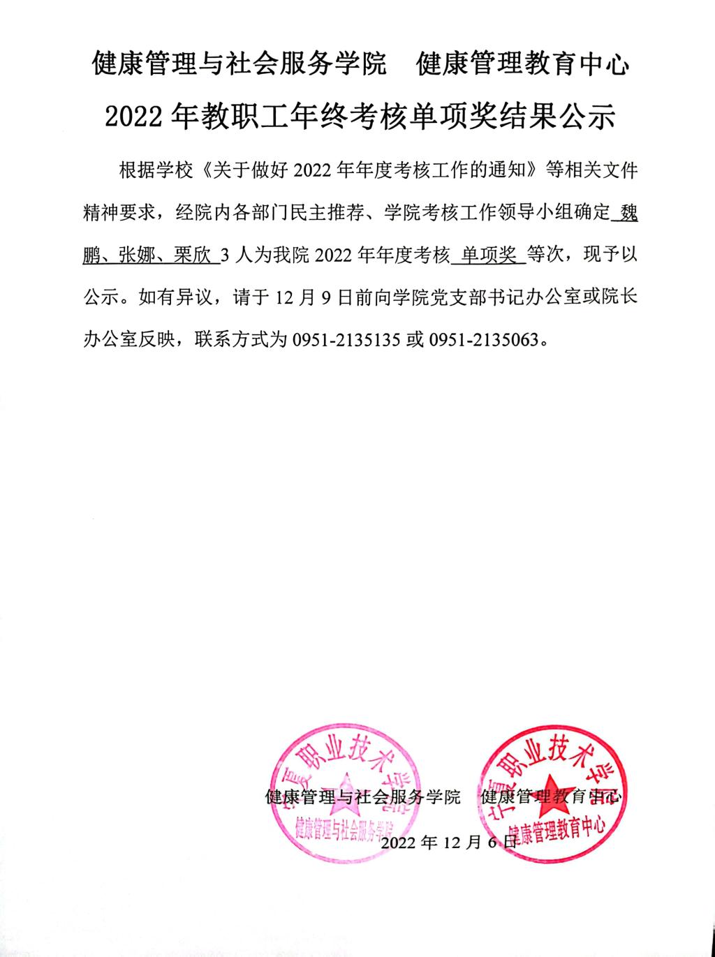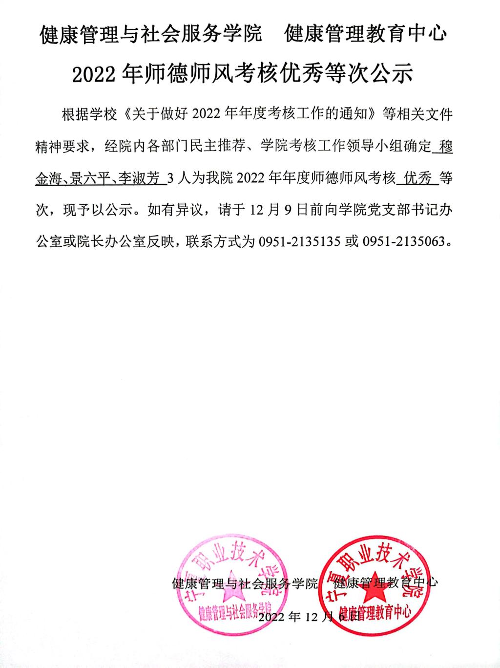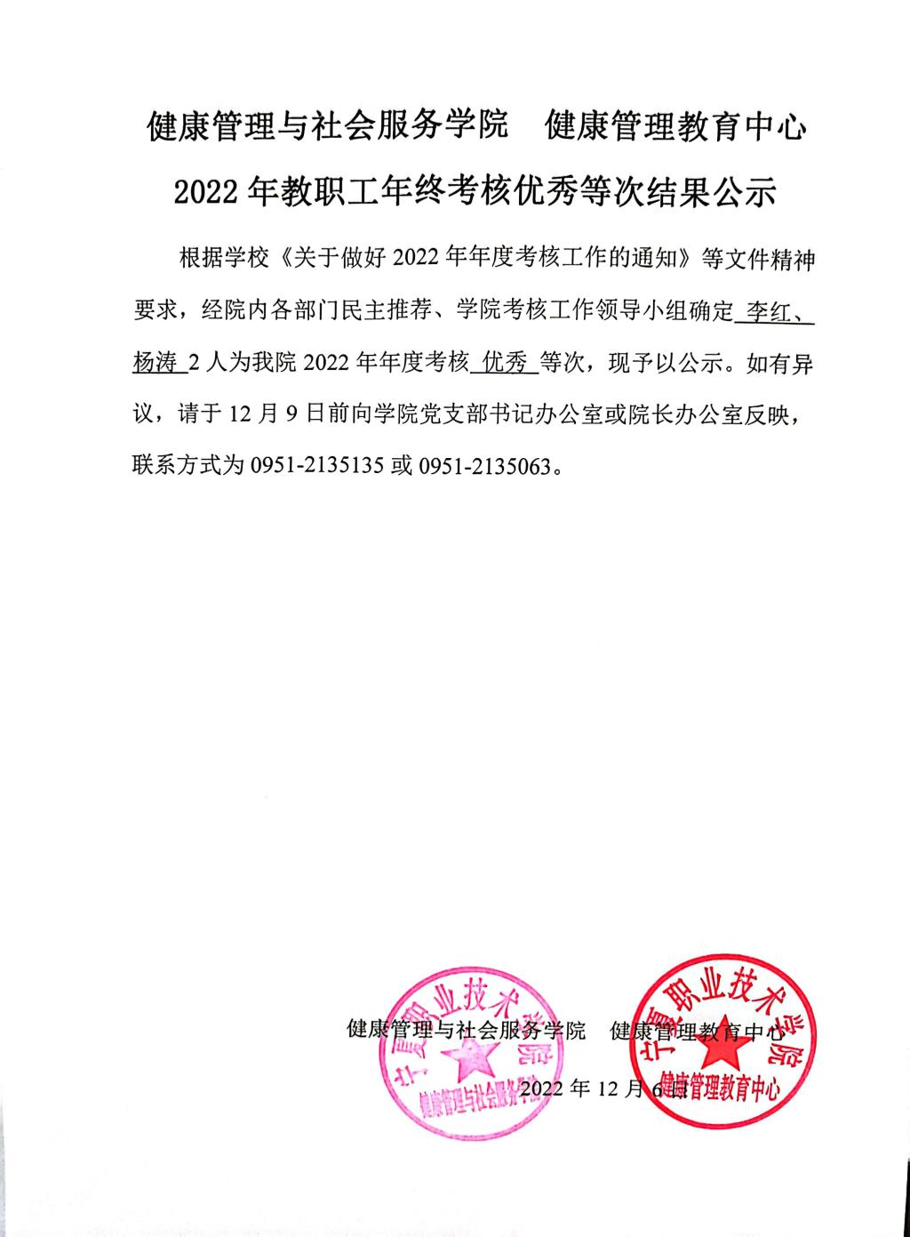 世界杯8833300足球 健康管理教育中心2022年年度考核结果公示
