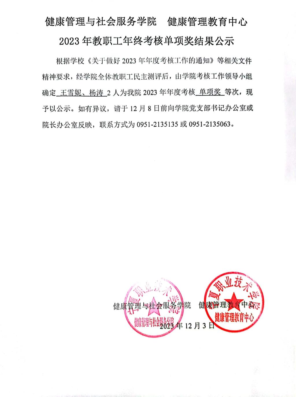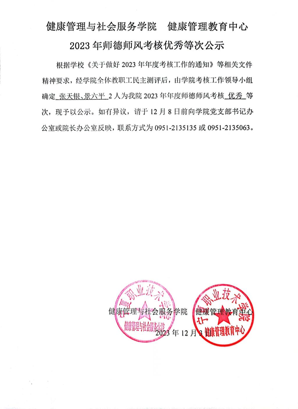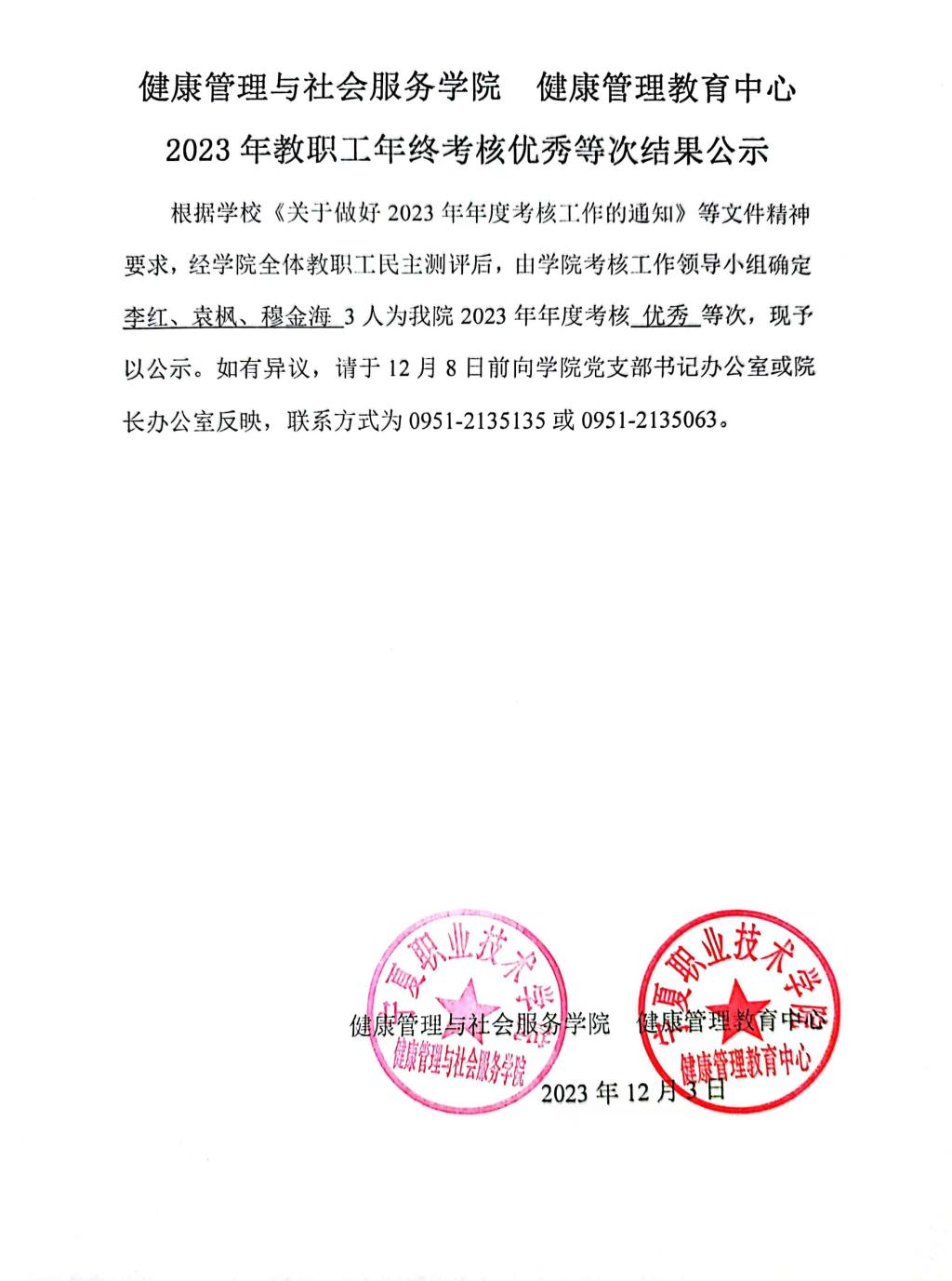 世界杯8833300足球 健康管理教育中心2023年年度考核结果公示