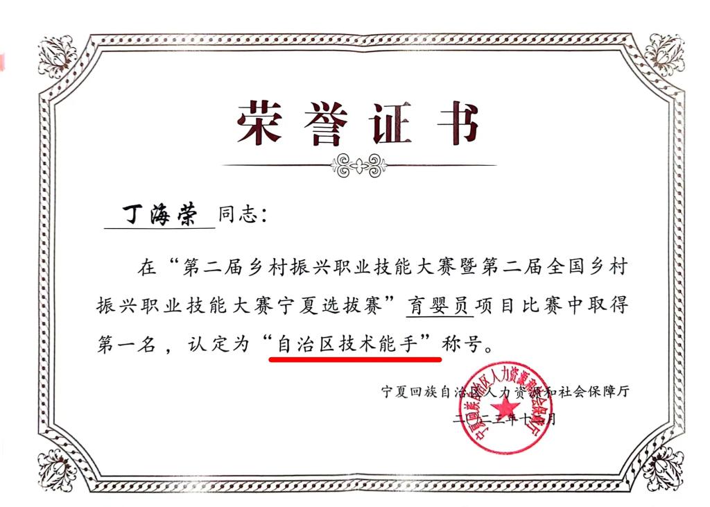 丁海荣同学参加第二届宁夏乡村振兴职业技能大赛并获奖