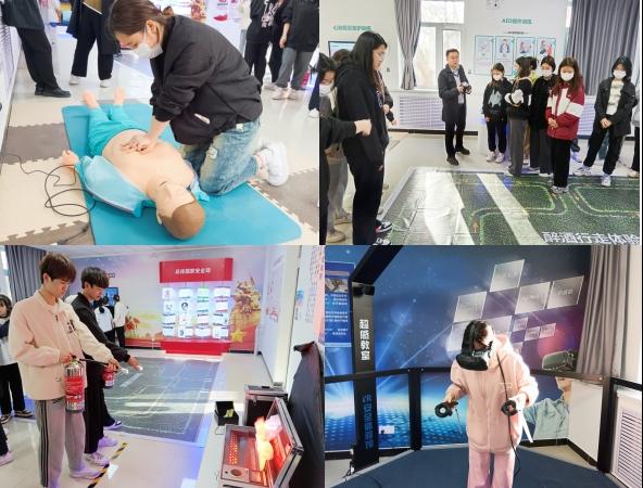 在交互体验式禁毒教育中,大家认识到毒品的危害,并增强了禁毒意识;在醉酒行走体验中,大家深刻理解了酒驾的危害,提高了交通安全意识;在使用灭火器环节,大家学会了火灾初期的应对技巧;在消防标识互动学习中,大家熟悉了各种消防标识的含义,增强了火灾预防能力;在AED操作训练中,大家掌握了自动体外除颤器的正确使用方法,提高了突发心脏骤停的救助能力;海姆立克急救法的学习,让师生们掌握了关键的急救技能,以应对突发状况。最后,在超感教室VR安全体验中,大家面对高度仿真的安全风险场景,提升了应对突发事件的能力。
