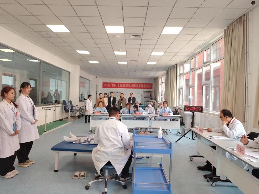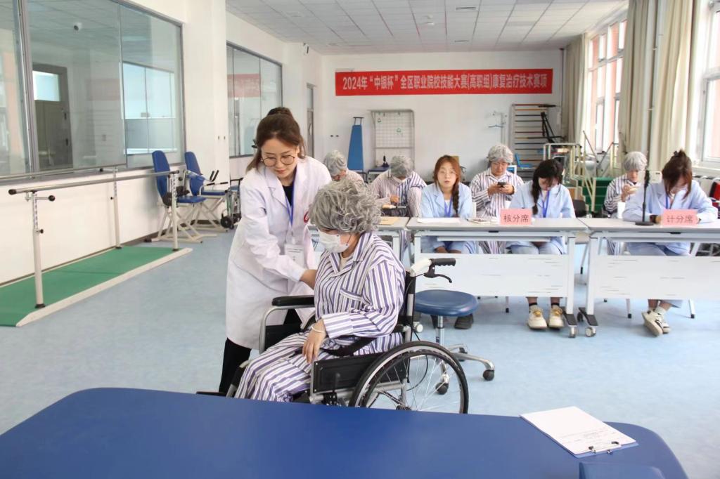 3月26日由宁夏回族自治区教育厅等联合主办,宁夏职业技术学院承办的2024年“中银杯”全区职业院校技能大赛(高职组)康复治疗技术赛项在宁夏职业技术学院健康养老实训中心举办,全区3所高职院校的9组参赛选手参加比赛。董事长周震、副董事长李晓延及教务处相关负责人深入赛场巡视比赛情况。
