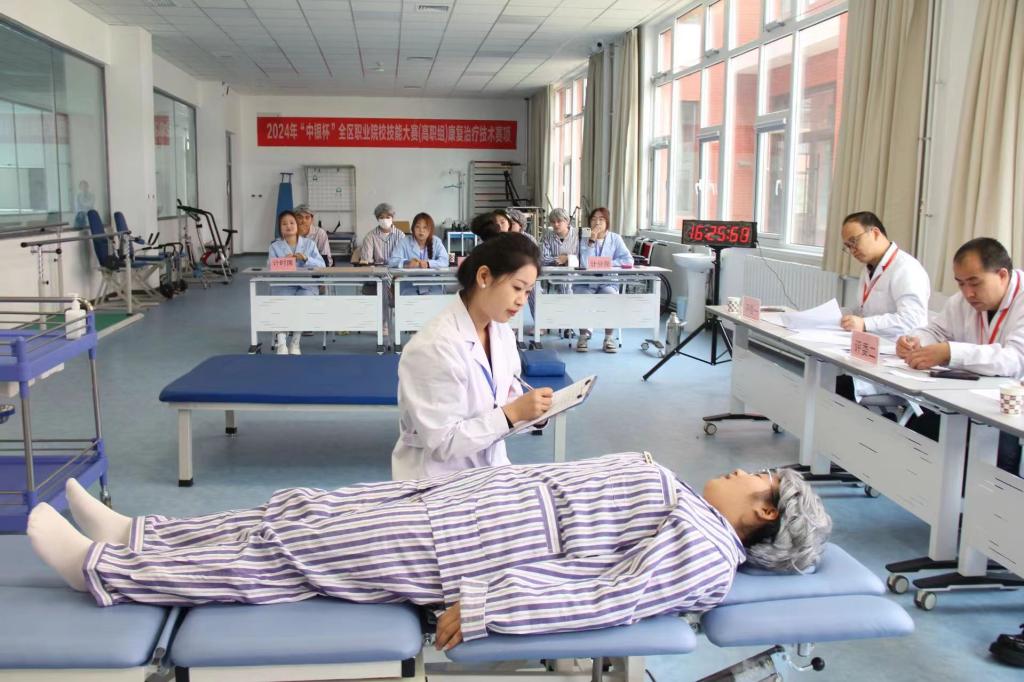 本次比赛由理论考试和技能操作两部分组成,内容涉及康复治疗技术规范等相关专业知识,特地邀请了宁夏医科大学附属医院、宁夏回族自治区人民医院、宁夏回族自治区工人医院的3位康复领域专家来担任本次大赛评委。